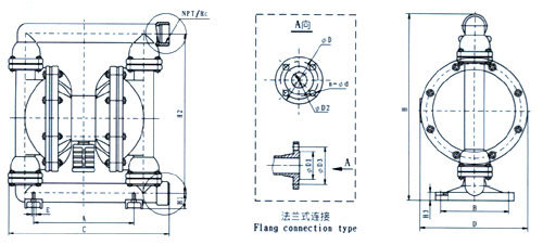 | 型号 | A | B | C | D | E | H1 | H2 | H3 | H | 螺纹 | 法兰式 | |