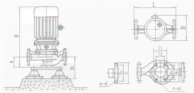 ISG、IRG、GRG、IHG、YG、ISHB型外形安装尺寸图:
